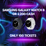 Win the SAMSUNG Galaxy Watch8 BT with Bixby (40mm) or £200 Cash.